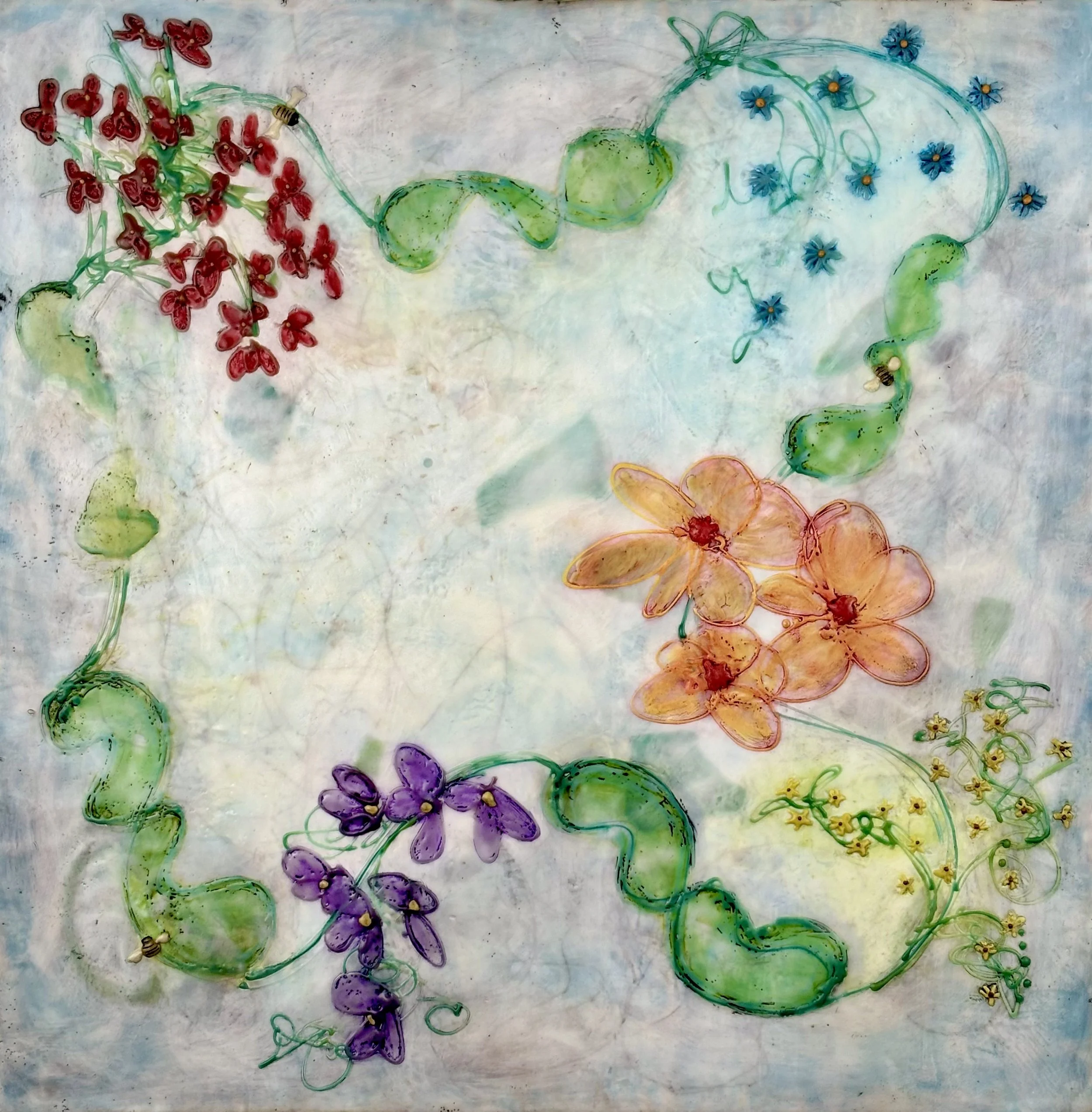 I am an encaustic painter and I use art to visually interpret ideas that inspire or challenge me, including philosophical writings and poetry. I use abstraction to express myself, leaving others to see and find their own meaning in the work. I am particularly drawn to nature for my subject matter, and am in awe of the interconnectedness of every living creature's life and the ties that bind us all together.