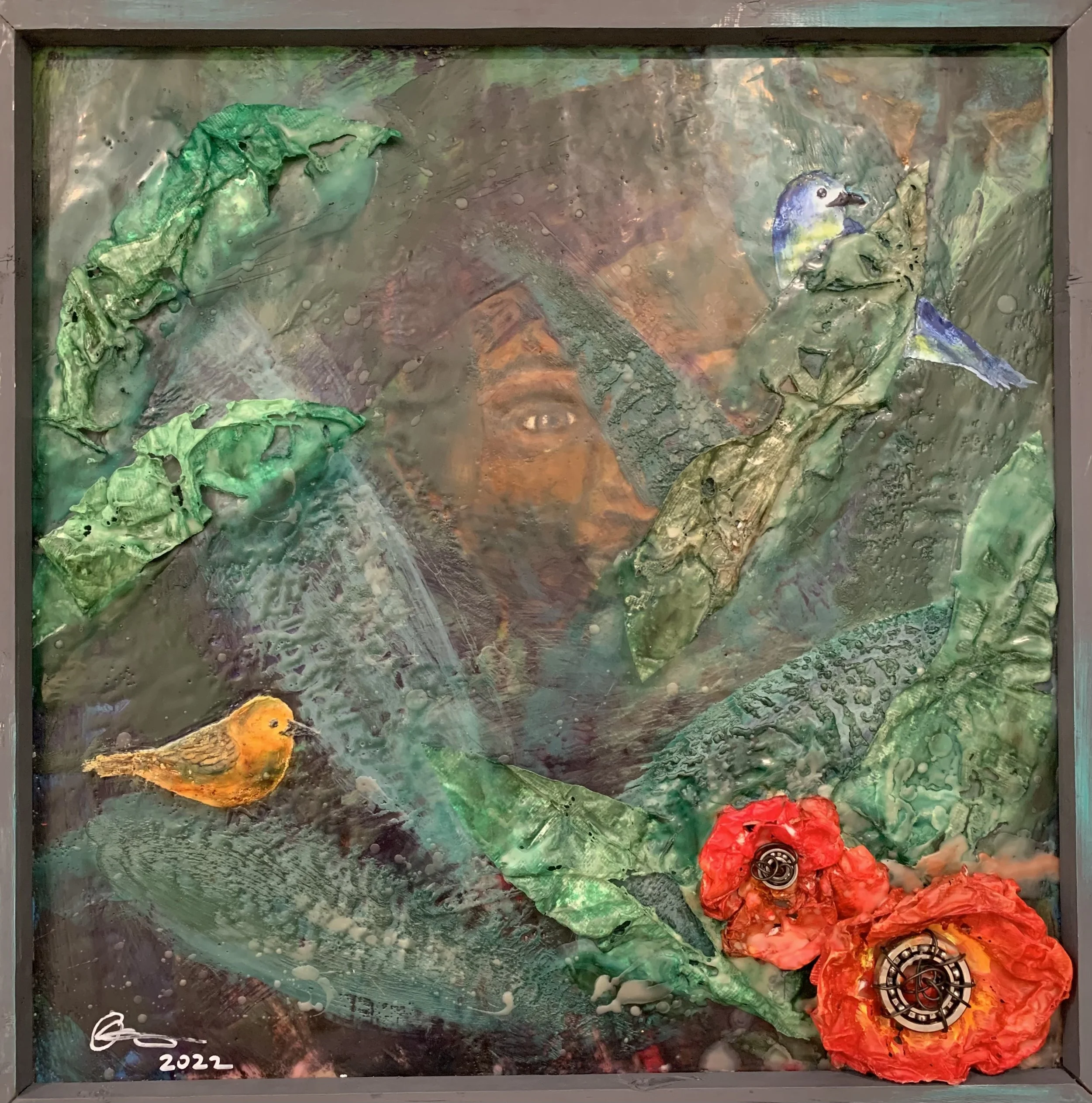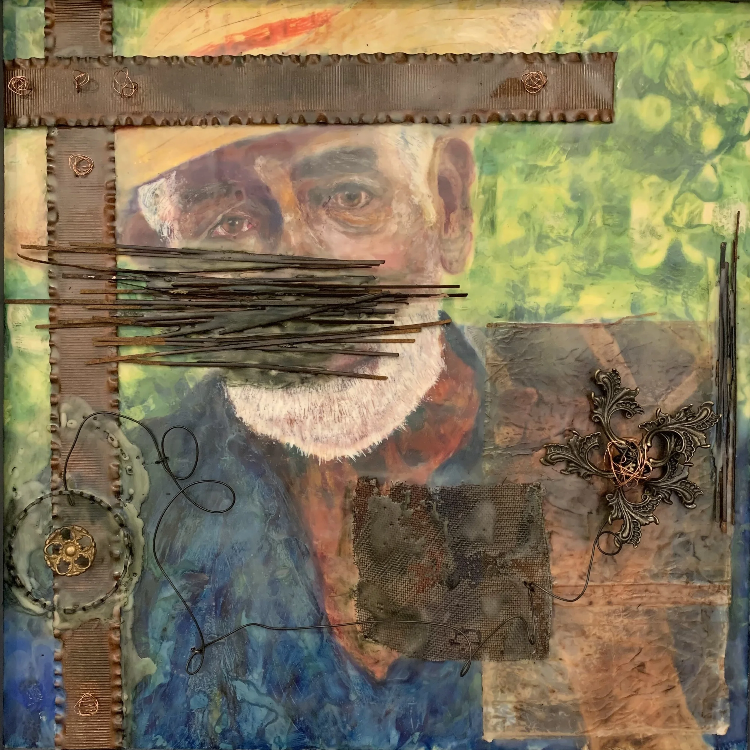 Encaustic mixed media on wood panel